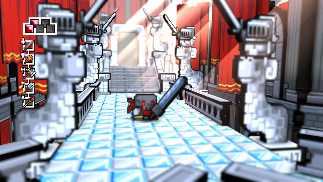 Respecto al combate, es sumamente sencillo y básicamente consiste en presionar el botón de ataque una y otra vez hasta terminar con los enemigos. Si bien hay alguna que otra variante dependiendo del arma que usemos, como por ejemplo un ataque cargado o de atacar a distancia, termina siendo lo que uno esperaría de un título de este estilo. Quizá donde el sistema se hace ligeramente más profundo es durante las peleas de jefes, las cuales son bastante entretenidas y requieren atención, mantenerse en movimiento y esperar la oportunidad de atacar. Algo que he de destacar, es que el movimiento en Skellboy, tanto en combate como cuando exploramos, es notoriamente más lento que en otros títulos de aventuras. Esto no sólo genera algunas molestias en las secuencias de plataformas, sino que también hace que sea un poco más difícil reaccionar a los ataques y genera una sensación de aburrimiento al momento de atravesar algunas áreas, en especial aquellas plagadas de enemigos.
