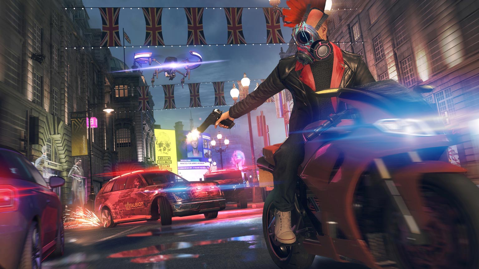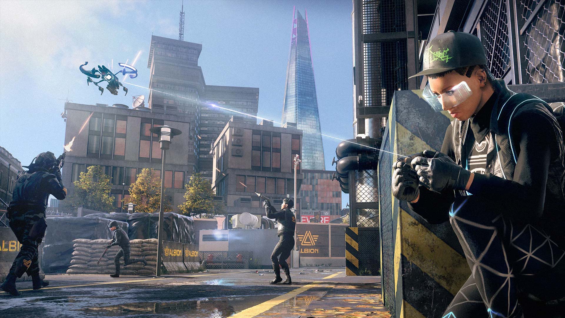 La tibieza de Ubisoft para contar historias con connotación política se ve reflejada una vez más en esta entrega. El contexto social y político de esta ciudad se toca poco y nada, en un relato donde escasean los matices. Buenos contra malos, una fórmula que no tiene impacto cuando estamos hablando de un grupo activista (considerado como terrorista ante la opinión pública) que se enfrenta a Albion, esta facción enemiga que tampoco cuenta con grises. Es como si Ubisoft con una mano intentará adoptar el contexto de lucha social contra la opresión y con la otra hace todo lo posible para “evitar” politizar el juego. De hecho, los ciudadanos que vamos reclutando sólo tienen un aporte de color al contexto de la historia y no un peso significativo en el desarrollo de la trama. Para esto último están algunos de los personajes que no controlamos, pero que forman parte de DedSec o de otras organizaciones.