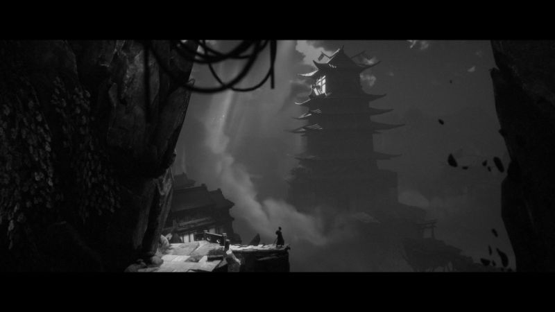 Los atractivos escenarios son una de las aristas que rápidamente llaman la atención y logran darle ese toque cinematográfico a la propuesta. A través de un sistema de cámara fija, que de tanto en tanto se desplaza en sincronía con el movimiento del protagonista, atravesaremos variados entornos que oscilan entre bosques, pueblos, templos y ruinas con toques sobrenaturales, con ese estilo monocromático en blanco y negro y una suerte de granulado que busca emular a las películas de esa época.